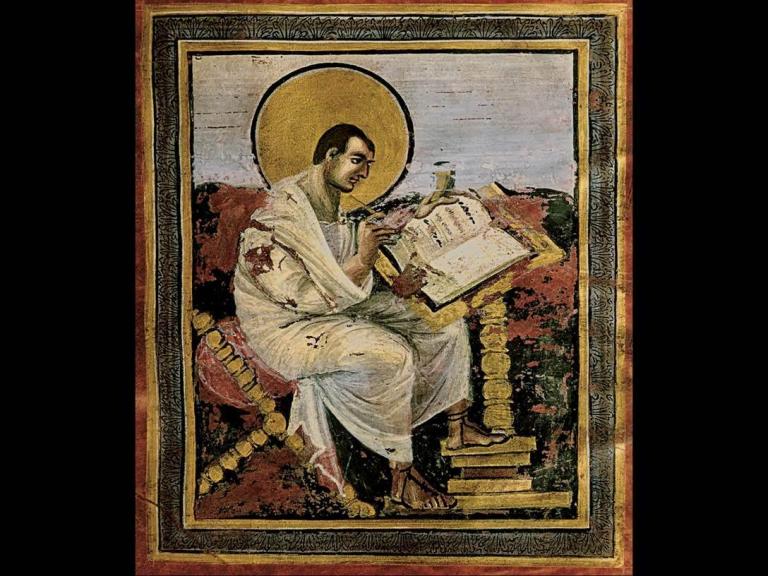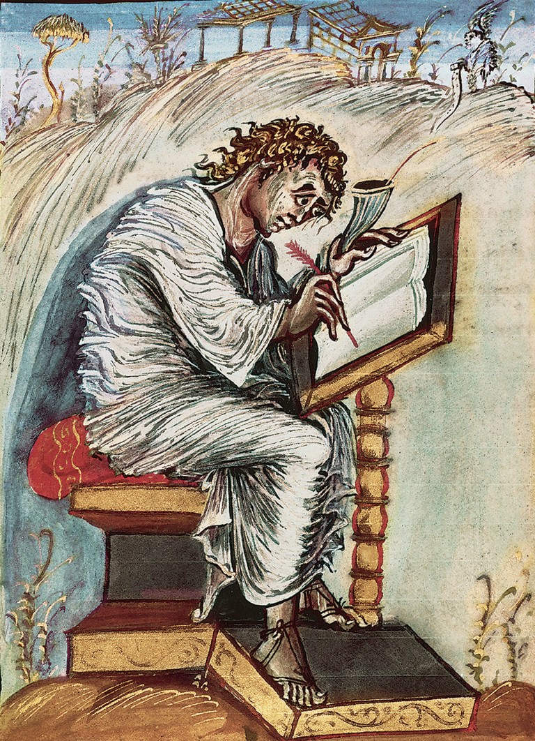 From the Ebbo Gospels (Gospel Book of the Archbishop of Reims), folio 18 verso, c. 816-835. Ink and tempera on vellum, 10.25 x 8.25 inches. Bibliothèque Municipale, Épernay, France. Khan Academy