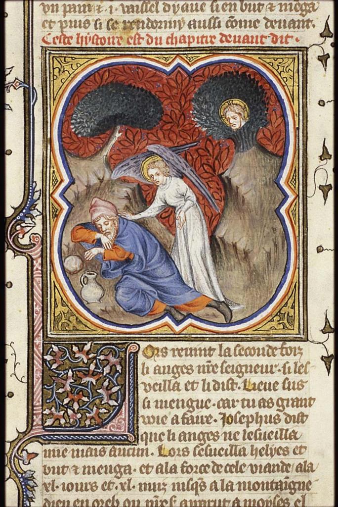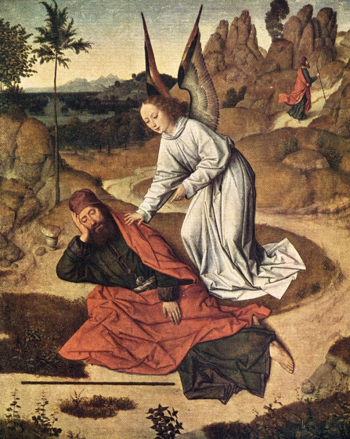 Then he lay down under the broom tree and fell asleep. Suddenly an angel touched him and said to him, ‘Get up and eat.’ He looked, and there at his head was a cake baked on hot stones, and a jar of water. He ate and drank, and lay down again. The angel of the Lord came a second time, touched him, and said, ‘Get up and eat, otherwise the journey will be too much for you.’ 1 Kgs. 19:5-7